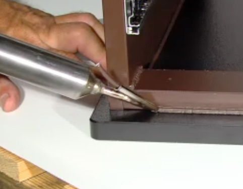 Holding the welder about an inch above the substrate, insert the welding rod in the tip and move it in an up and down motion three to four times. Doing this will heat the welding rod while heating the substrate. An indication the substrate is ready to be welded is when it starts getting a fogging effect — similar to blowing on a piece of glass.